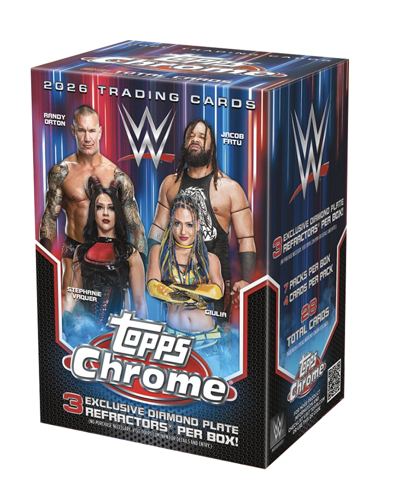 La Topps Chrome WWE 2026 Value Box porta sul ring tutto il fascino del brand Chrome applicato allโuniverso WWE. Un prodotto costruito per chi ama il wrestling, il collezionismo moderno e lโemozione di unโapertura capace di sorprendere pack dopo pack.